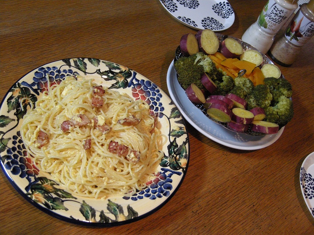 嫁が「あー、パスタが食べたいなー、パスタ食べたいー!」と言うので喜んで厨房へ入りました。