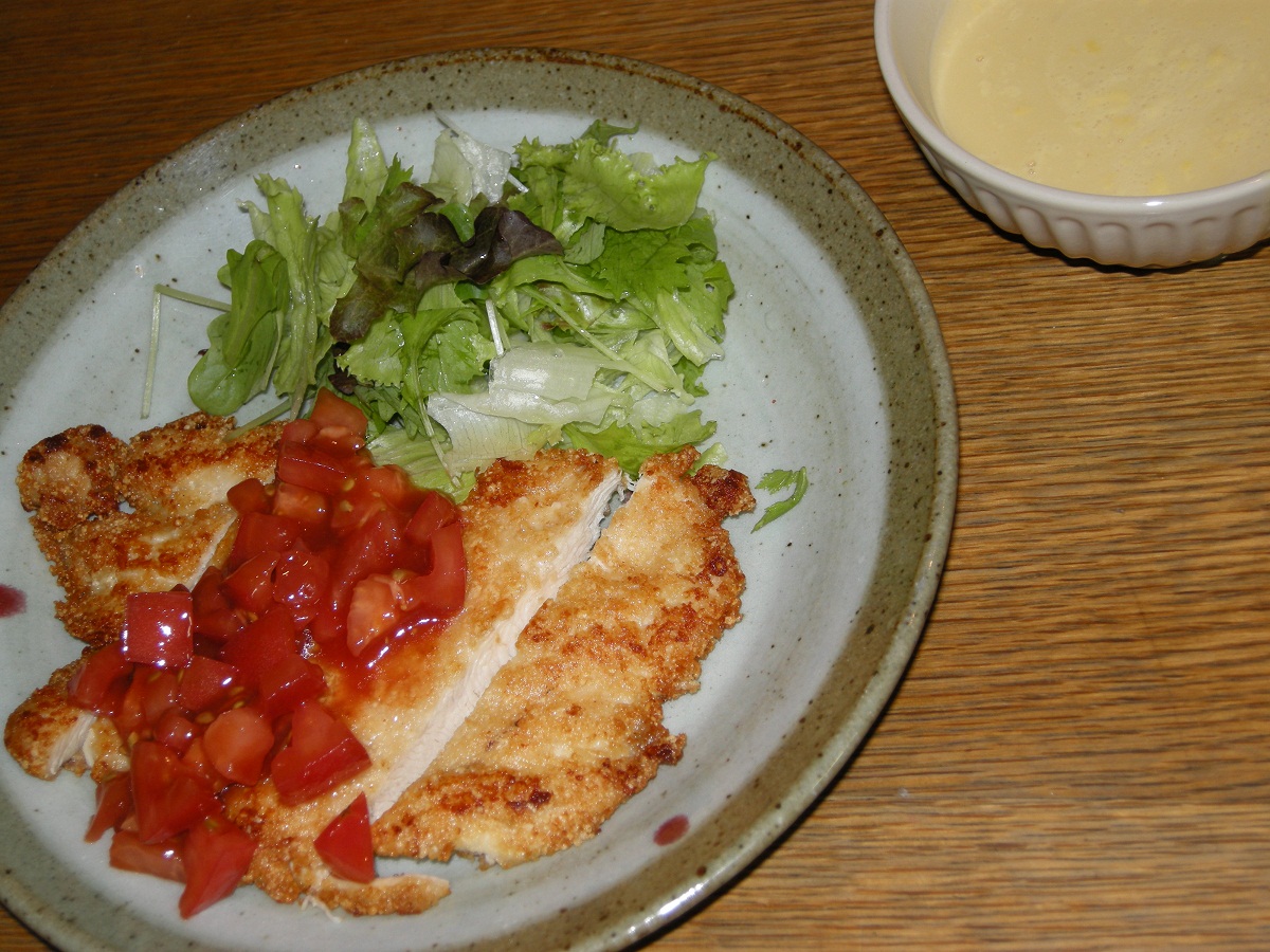 今回はパスタではなく、前出の本より、鶏むね肉のミラノ風カツに挑戦いたしました。